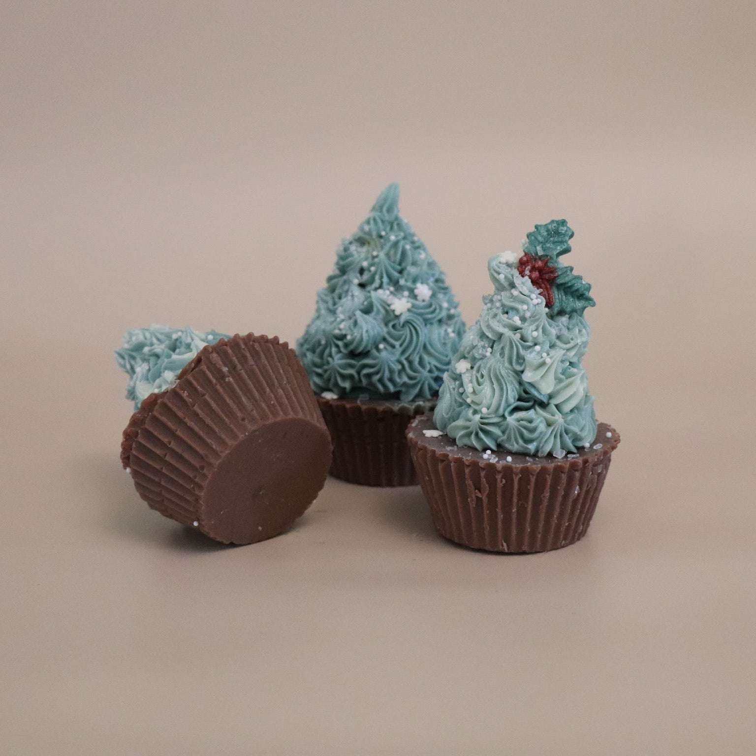 Sweet, festive, and full of holiday cheer, Joy is a Christmas tree cupcake soap that delights both the eyes and the senses. Its layered design features rich cocoa and cream tones, topped with a detailed Christmas tree. Infused with the comforting scents of gingerbread and fresh pine, this bar brings warm, spicy, and evergreen notes to your bath. Enriched with Goat Milk and Ginger Powder, Joy gently nourishes, moisturizes, and lightly exfoliates the skin.