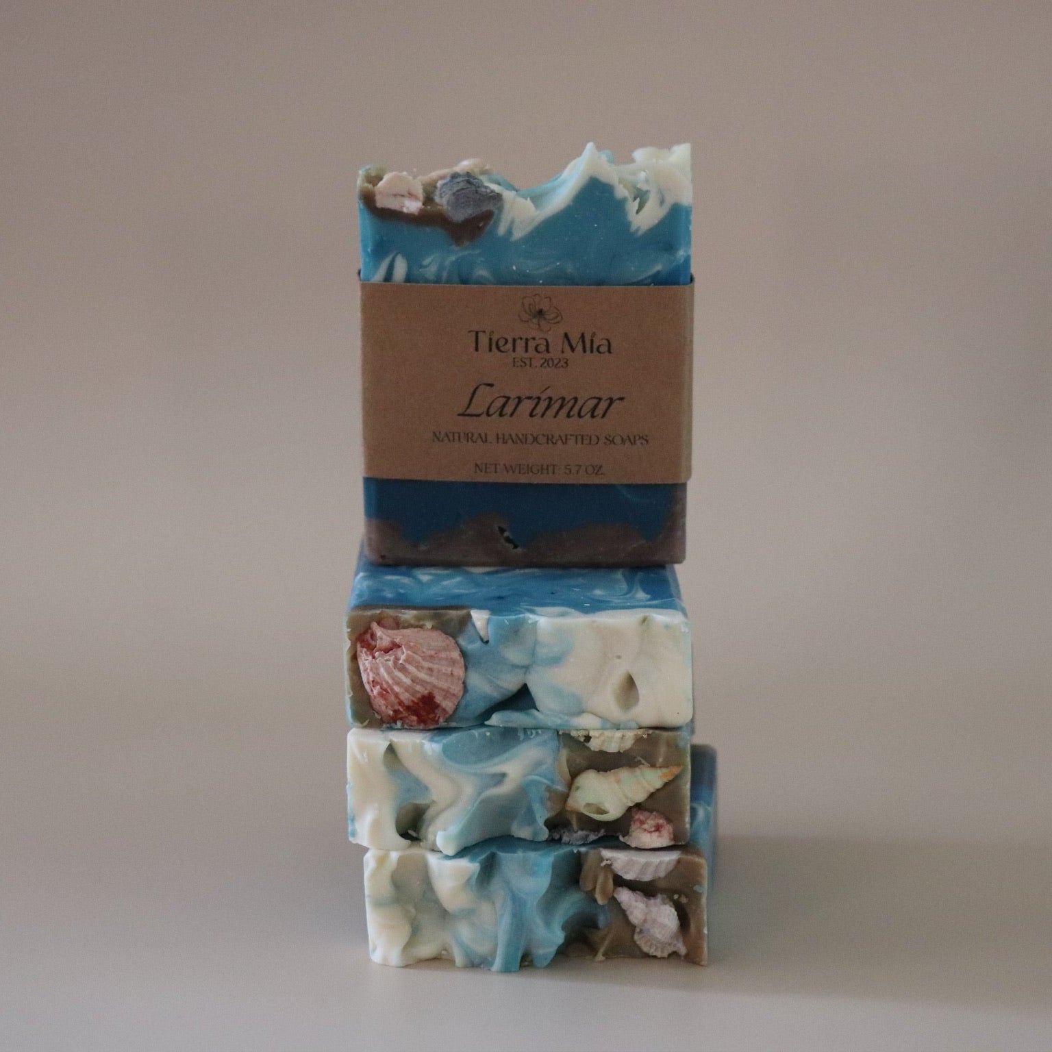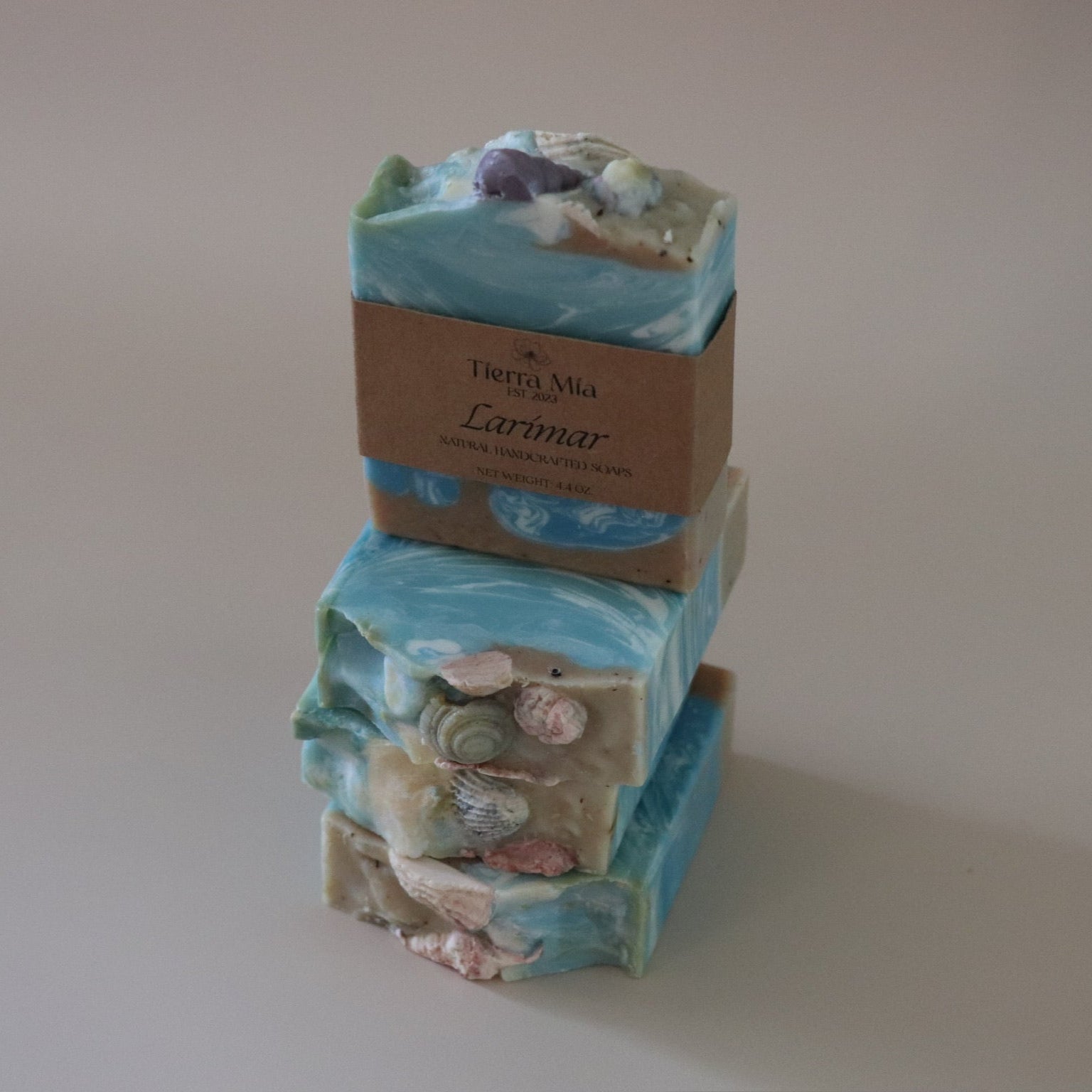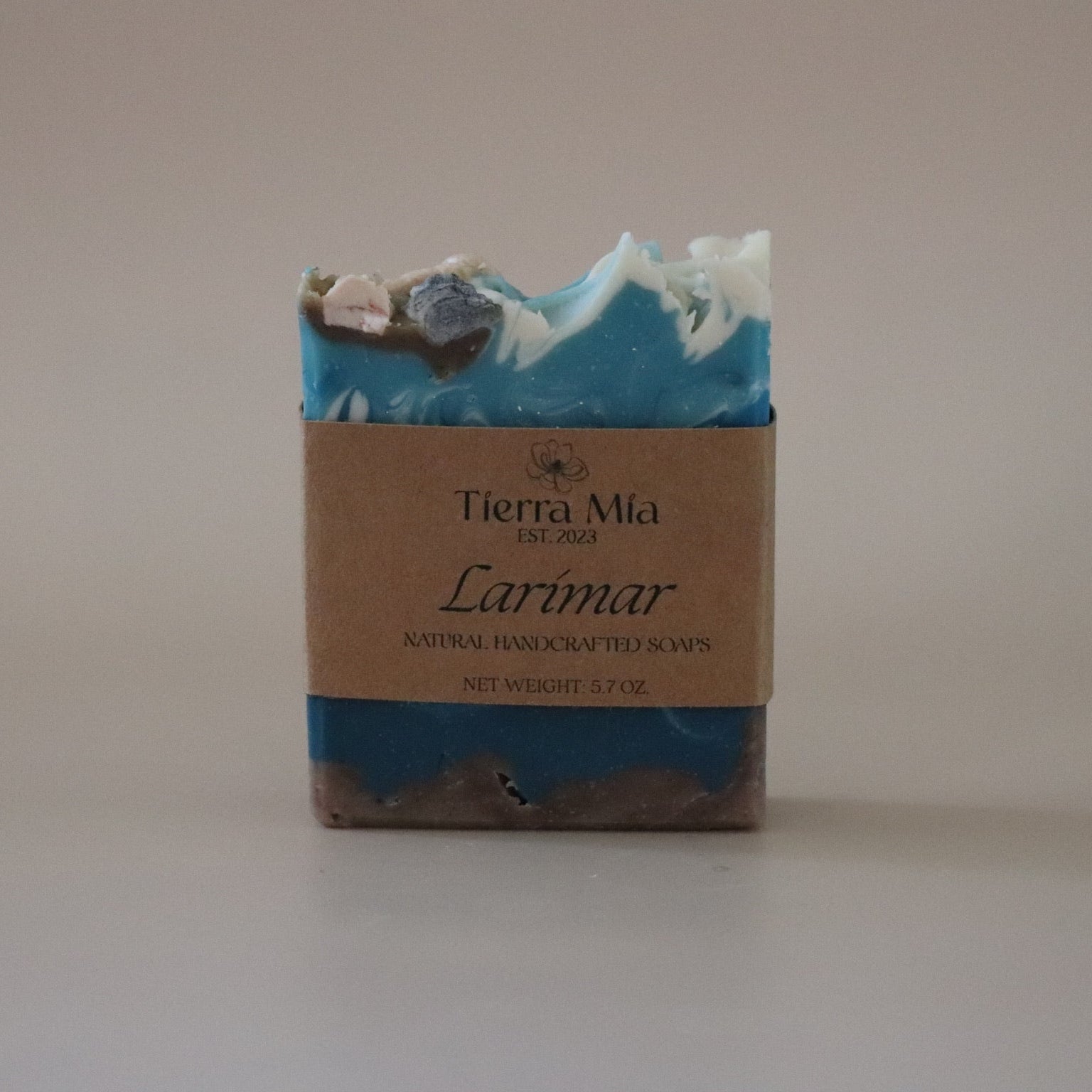 The original "Larimar" is scented like a coastal breeze with deep marine notes and a warm beachy base, it’s refreshing and grounding. The essential-oil only version of our beachy favorite offers a minty, floral, and woody scent profile for a spa-like experience. With Spirulina and Zinc Oxide for natural coloring and Goat Milk for creaminess, this soap is earthy, oceanic, and luxurious.