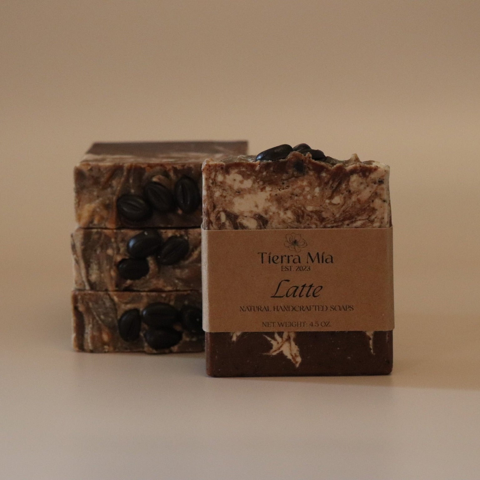 Latte is filled with creamy swirls that resemble a latte with milk poured into espresso, topped with whole coffee beans. Latte's fragrance has slightly faded and has a subtle scent of coffee. The soap is still full of goodness. A creamy, frothy soap infused with Goat Milk and Buttermilk for skin softness, Ground Coffee for exfoliation, and Tussah Silk for a luxurious feel.